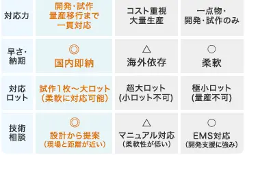 でも、1枚の試作基板からでも、 国内外の量産も。
