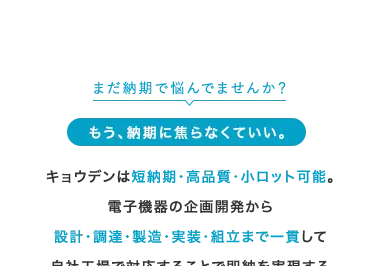 キョウデンは短納期・高品質・小ロット可能。